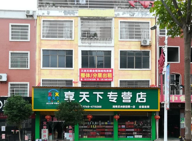 享天下专营店楼上三至五楼全框架结构房屋整体或分层出租,租金面议。联系电话: