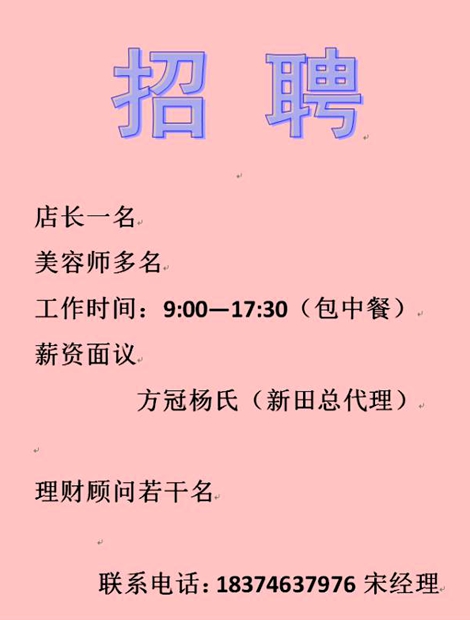 新田星耀文化传媒招聘[12-31]