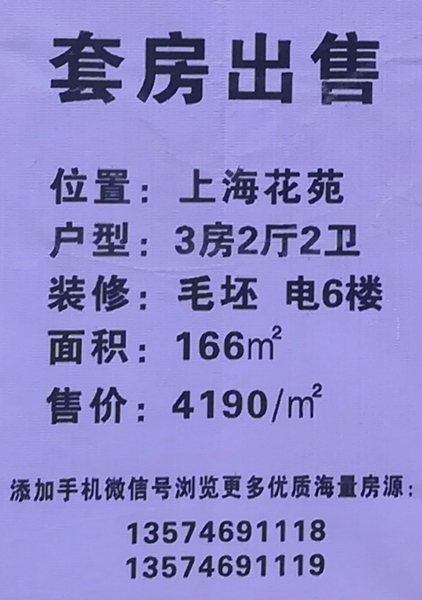 >> 上海花园6楼毛坯房出售 4190元/㎡