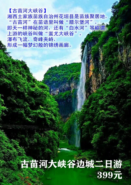 古苗河大峡谷 边城茶峒二日游 399元/人