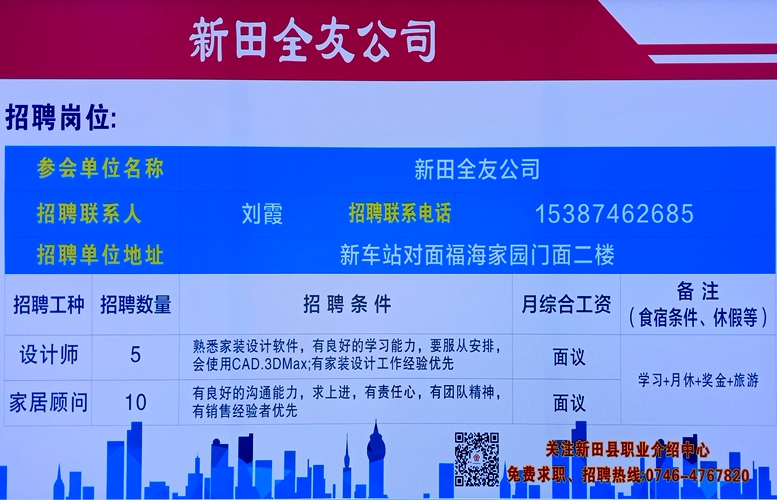 新田全友公司招聘设计师、家居顾问