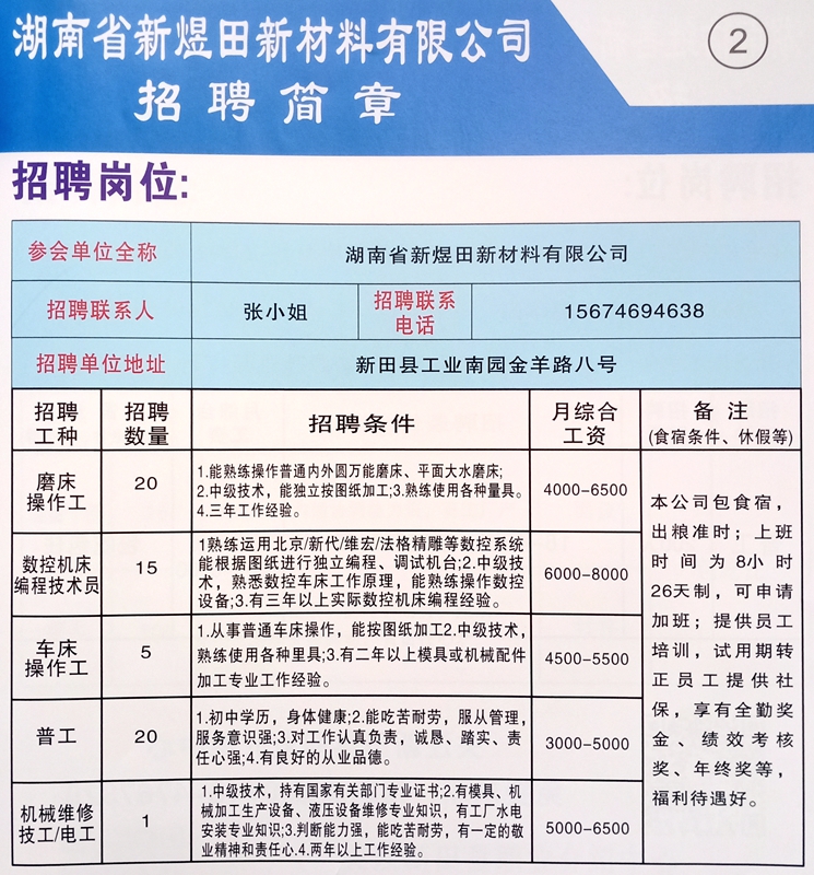 >> 湖南省新煜田新材料有限公司招聘